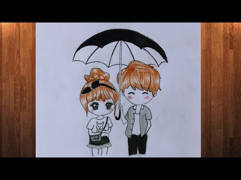 Cute Couple Cartoon Drawing with Umbrella / Couple Drawing Step by Step / Umbrella / Drawing:) - Cartoon Cute Couple Drawings Simple