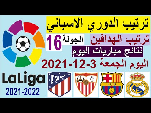 ترتيب الدوري الاسباني وترتيب الهدافين ونتائج مباريات اليوم الجمعة 3-12-2021 و بداية الجولة 15 - ترتيب الدوري الاسباني 2021 الدرجة الثانية